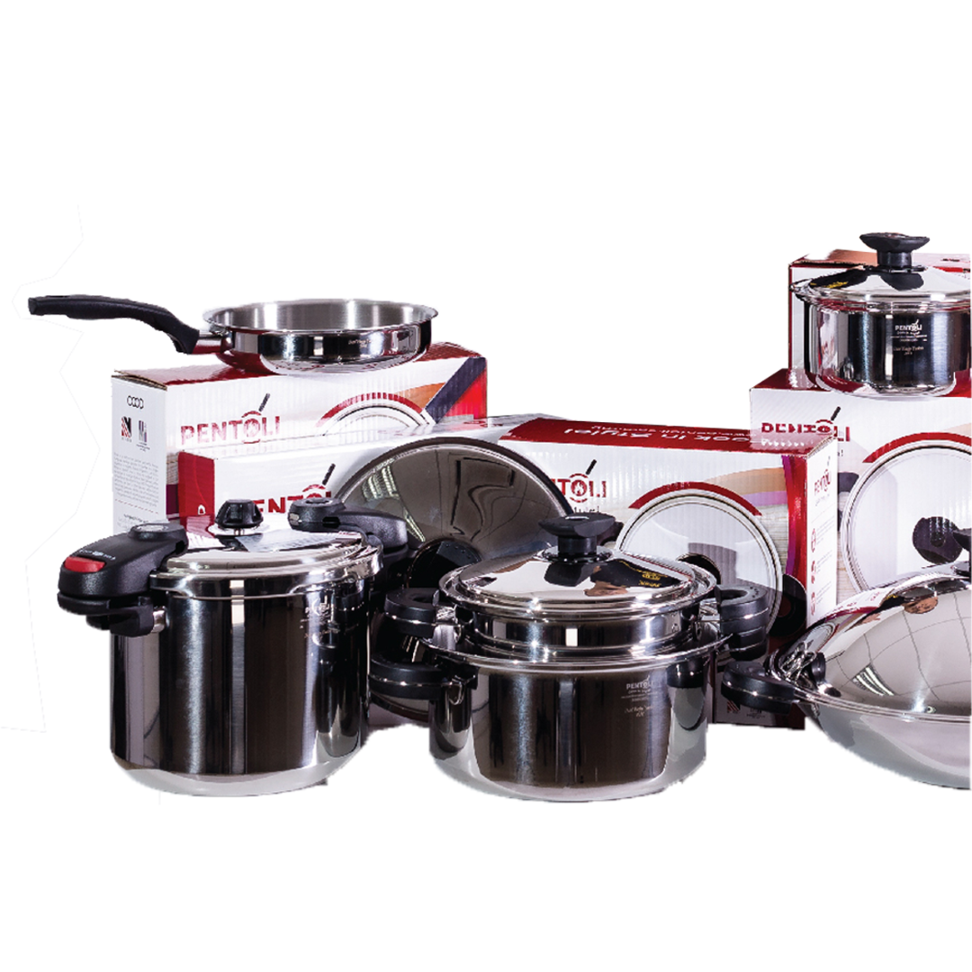 The maiden launch of PENTOLI cookware encompasses the "Passione series" consisting of 18cm sauce pot, 22cm casserole, 26cm stock pot, 22cm frying pan and 38cm flat bottom wok. In addition. a signature product & litres pressure cooker, equipped with multiple pressure relief valves to ensure safety in its cooking operation in compliance with Japan Safety Goods Standard is also introduced.