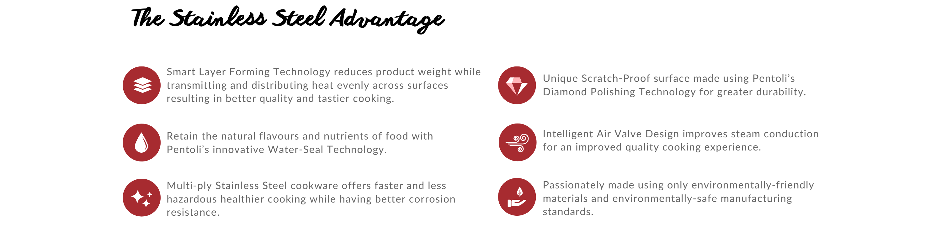 Versatile and made durable. Pentoli's innovative smart-forming technology produces variable wall thickness while optimising body weight and heat distribution of the cookware to ensure faster cooking time and lesser energy consumption.